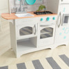 KidKraft Countryside Play Kitchen is a modern chic, country style kitchen, full of fantastic and exciting features for budding chefs to explore and play. Cook up a storm with the cook top and oven, then wash up in the handy sink. Use the cute magnetic shapes and numbers to decorate the fridge and freezer. A statement piece for any playroom or bedroom and bound to provides hours of cooking and kitchen play fun!